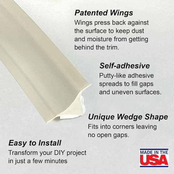 Questions and Answers for InstaTrim 3/4 in. x 50 ft. Ivory PVC Inside Corner Self-adhesive Flexible Caulk and Trim Molding