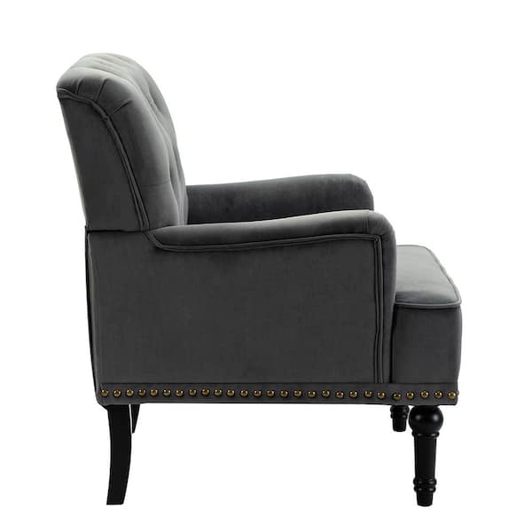 Be the first to ask a question for JAYDEN CREATION Enrica Grey Tufted Comfy Velvet Armchair with Nailhead Trim and Rubberwood Legs (Set of 2)