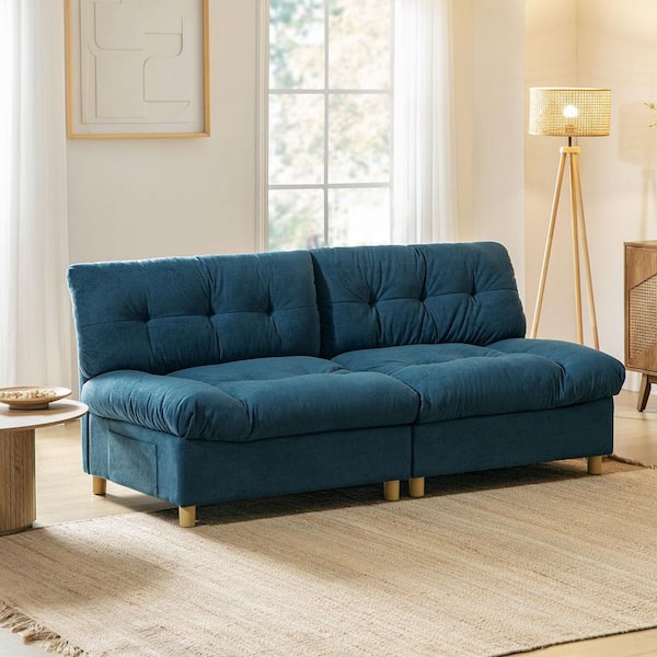 Hector Blue Modern 81 in. Polyester Rectangle Armless Sofas with USB and Type-C Ports