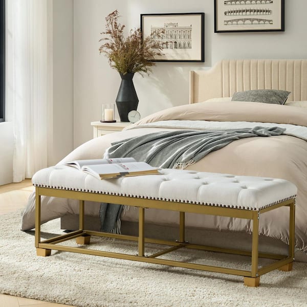 Be the first to ask a question for JAYDEN CREATION Norman White Transitional Tufted Storage Bench with Nailhead Trim