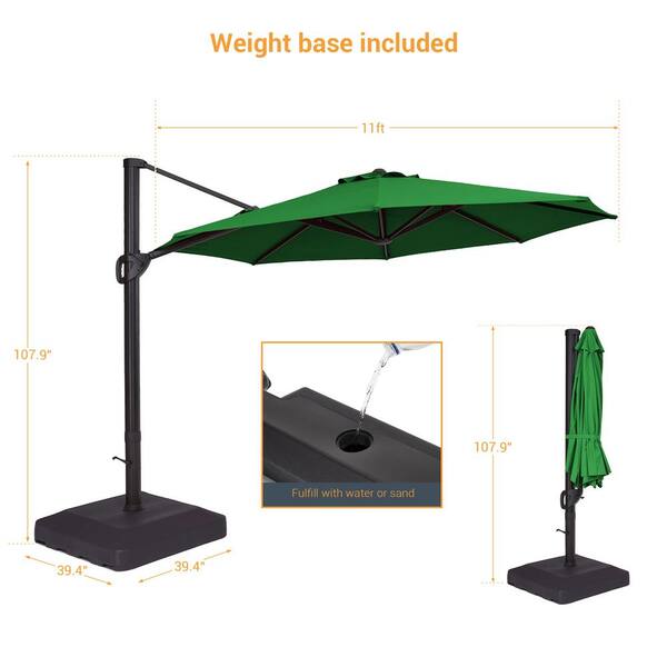 - 11 ft. cantilever umbrella with 8 aluminum ribs