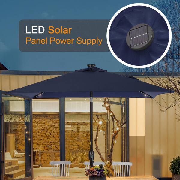 Questions and Answers for JOYESERY 6.5 ft. x 6.5 ft. LED Square Patio Market Umbrella with UPF50+, Tilt Function and Wind-Resistant Design, Navy Blue