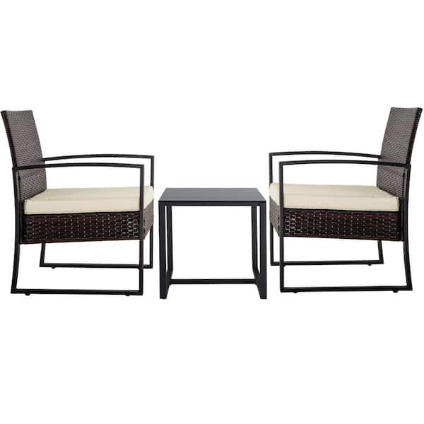 Questions and Answers for JUSKYS Cute 3-Piece Brown Wicker Patio Conversation Set with Beige Cushions