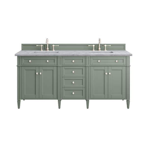 Questions and Answers for James Martin Vanities Brittany 72.0 in. W x 23.5 in. D x 33.8 in. H Bathroom Vanity in Smokey Celadon with Carrara Marble Marble Top