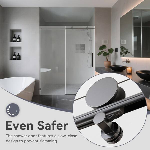 Questions and Answers for Jasmie 56-60 in. W x 74 in. H Frameless Single Sliding Shower Door in Matte Black with 5/16 in. Clear Glass Tempered Soft-Close