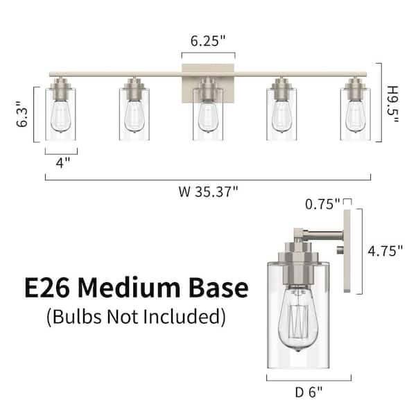 Questions and Answers for KAWOTI 35 in. 5-Light Brushed Nickel Vanity Light with Clear Glass Shade