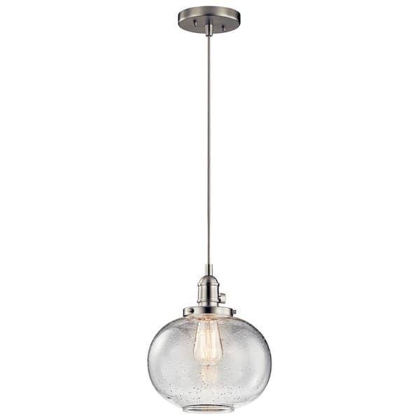 Questions and Answers for KICHLER Avery 9.75 in. 1-Light Brushed Nickel Farmhouse Shaded Kitchen Globe Mini Pendant Hanging Light with Clear Seeded Glass