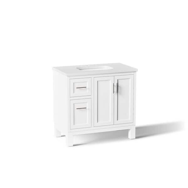 Questions and Answers for KOHLER Quo 37in. Single Sink Freestanding White Bath Vanity with White Quartz Top Assembled
