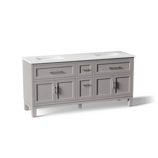 Be the first to ask a question for KOHLER Quo 73in. Double Sink Freestanding Mohair Grey Bath Vanity with White Quartz Top Assembled