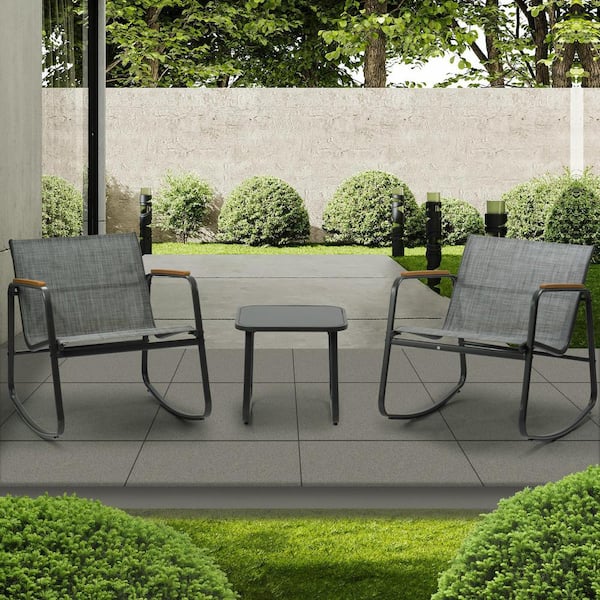 Be the first to ask a question for KOZYARD 3 Piece Metal Patio Conversation Set with Wooden Armrests, Outdoor Patio Furniture Set with Glass Table (Gray)