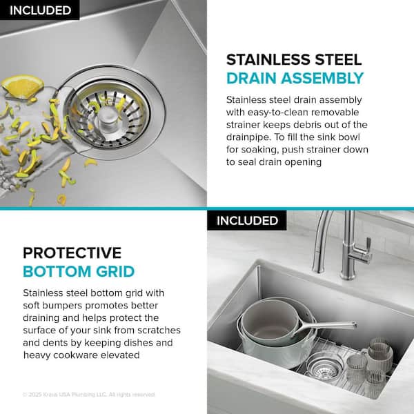Questions and Answers for KRAUS Standart PRO 26 in. Undermount Single Bowl 16 Gauge Stainless Steel Kitchen Sink with Accessories