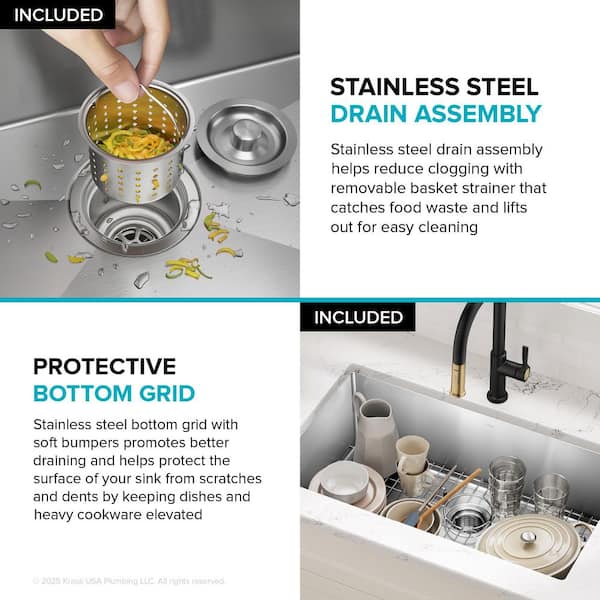 Questions and Answers for KRAUS Standart PRO 32 in. Undermount Single Bowl 16 Gauge Stainless Steel Kitchen Sink with Accessories