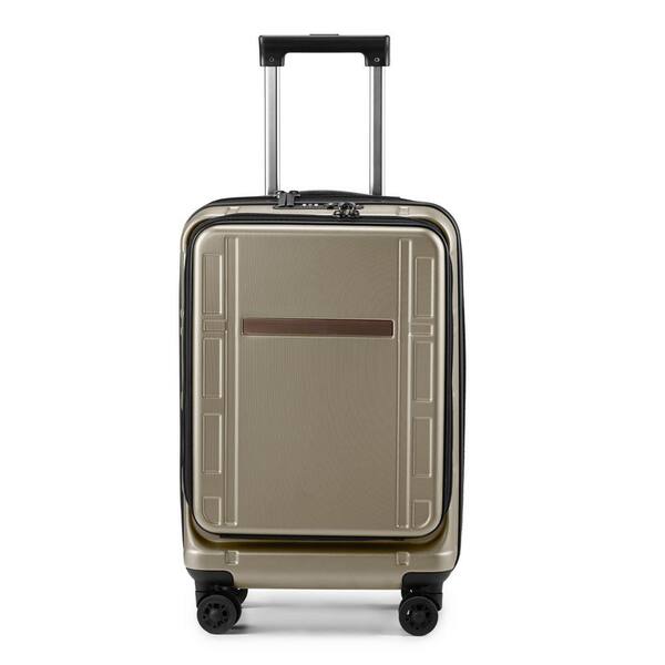 1-Piece Luggage Set, ABS Plus PC 20 in. Luggage with Front Compartment, Double Spinner Wheels, TSA Lock, Khaki Color