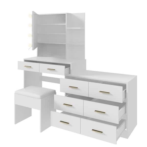 Questions and Answers for Karl home 2-Piece White Makeup Vanity Set with Combination Cabinet