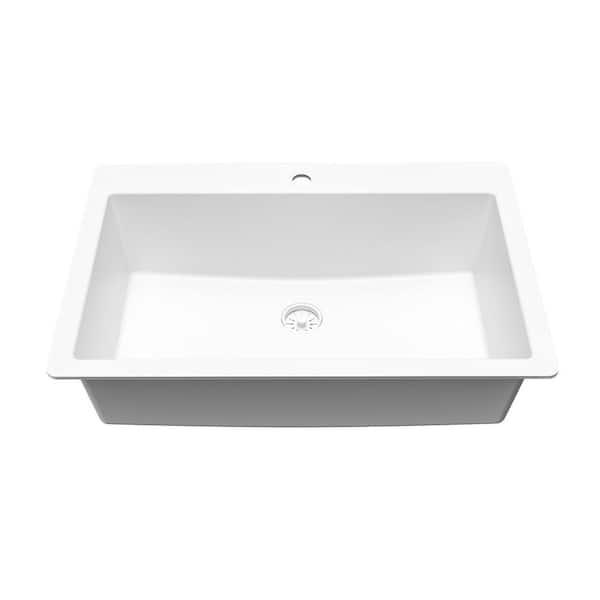 Questions and Answers for Karran QT-812 Quartz 33 in. Large Single Bowl Drop-In Kitchen Sink in White