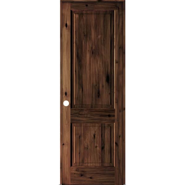32 in. x 96 in. Rustic Knotty Alder 2 Panel Right Hand Red Mahogany Stain Wood Single Prehung Interior Door w/Square Top