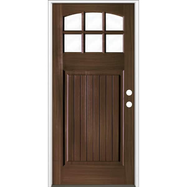36 in. x 80 in. Craftsman 6 Lite V Groove Arch Top Black Stain Left-Hand/Inswing Hemlock Prehung Front Door