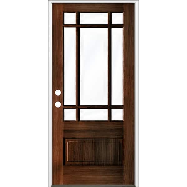 36 in. x 80 in. Craftsman Prairie 3/4 Lite Clear Glass Red Mahogany Stain Right-Hand/Inswing Hemlock Prehung Front Door
