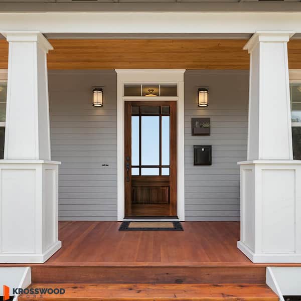 Be the first to ask a question for Krosswood Doors 36 in. x 80 in. Craftsman Prairie 3/4 Lite Clear Glass Red Mahogany Stain Right-Hand/Inswing Hemlock Prehung Front Door