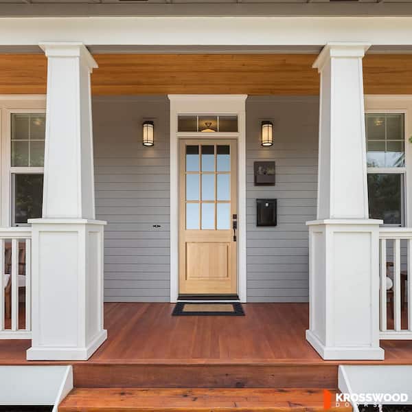 Be the first to ask a question for Krosswood Doors 36 in. x 96 in. Farmhouse Beveled 9-Lite Clear Glass Left Hand Unfinished Hemlock Wood Prehung Front Door