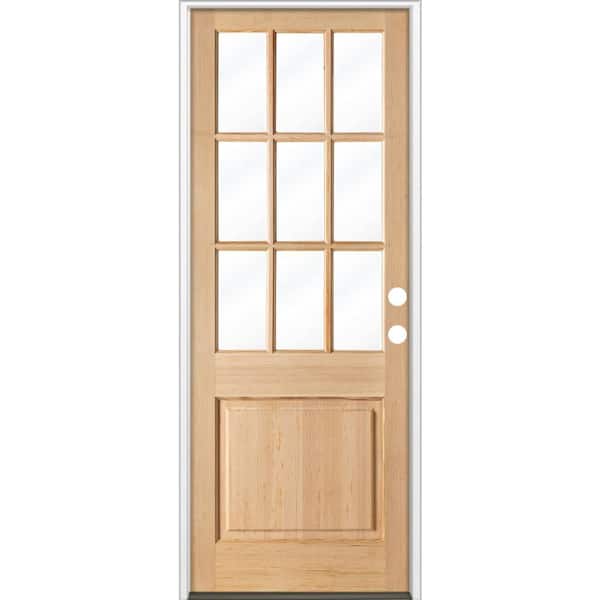 36 in. x 96 in. Farmhouse Beveled 9-Lite Clear Glass Left Hand Unfinished Hemlock Wood Prehung Front Door