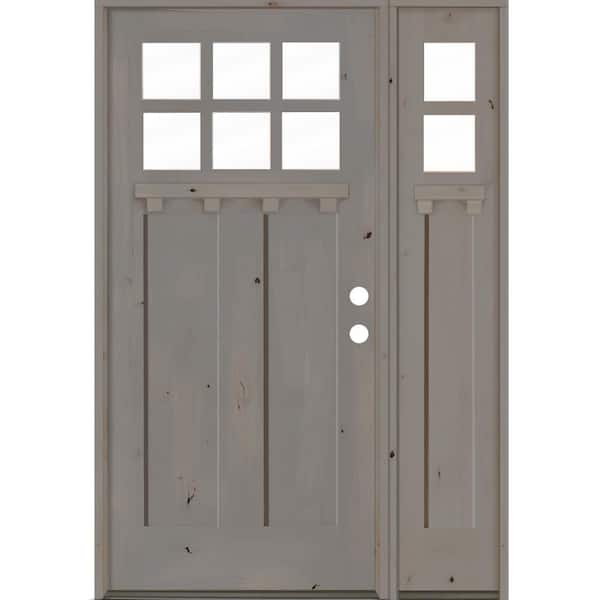 50 in. x 80 in. Craftsman Knotty Alder 2 Panel Left-Hand 6 Lite Clear Glass DS Gray Wood Prehung Front Door/Sidelite