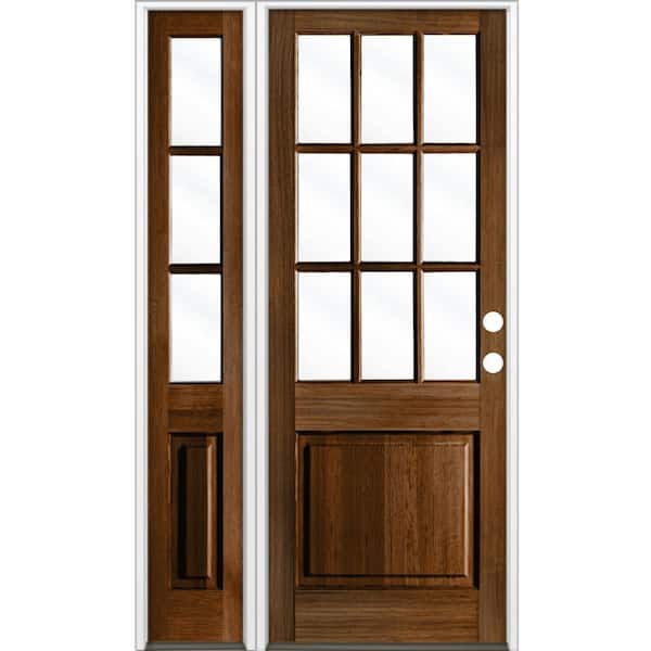 Questions and Answers for Krosswood Doors 50 in. x 96 in. Farmhouse 9-Lite Clear Glass Left-Hand Provincial Stain Hemlock Wood Prehung Front Door w/ LSL