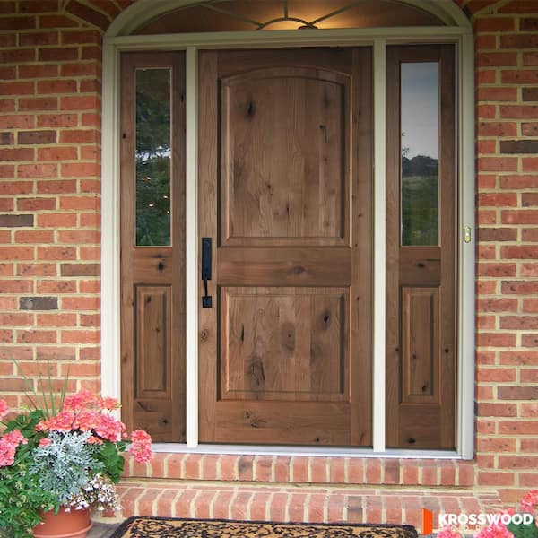 Questions and Answers for Krosswood Doors 58 in. x 80 in. KnottyAlder 2Panel Arch-Top Right-Hand/Inswing Clear Glass True Black Stain Wood Prehung Front Door DHSL