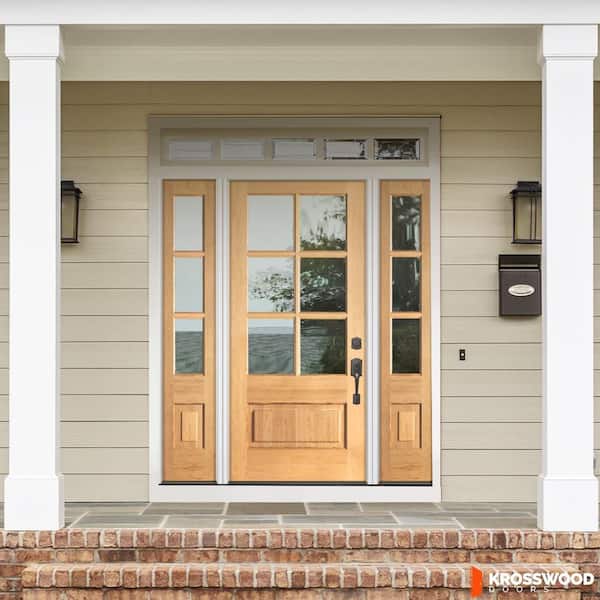 Questions and Answers for Krosswood Doors 64 in. x 80 in. Farmhouse 3/4 Lite Clear Glass Left-Hand/Inswing Clear Stain Hemlock Prehung Front Door w/DSL