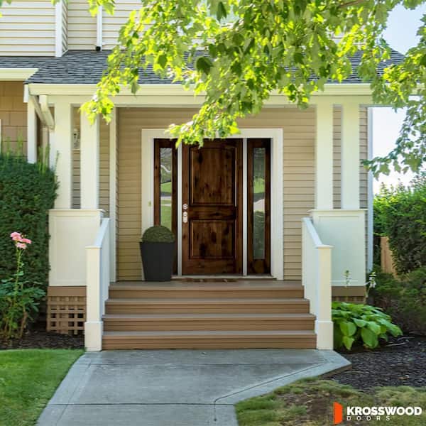 Questions and Answers for Krosswood Doors 64 in. x 96 in. Knotty Alder 2 Panel Right-Hand/Inswing Clear Glass Red Mahogany Stain Wood Prehung Front Door DFSL
