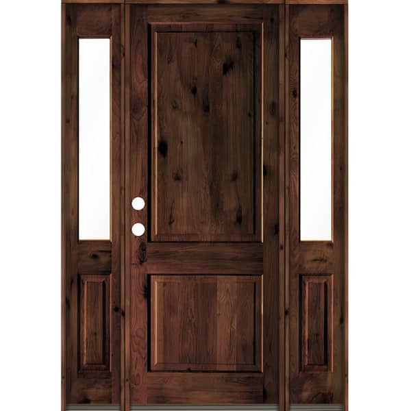 70 in. x 96 in. Rustic Knotty Alder Square Top Red Mahogany Stained Wood Right Hand Single Prehung Front Door