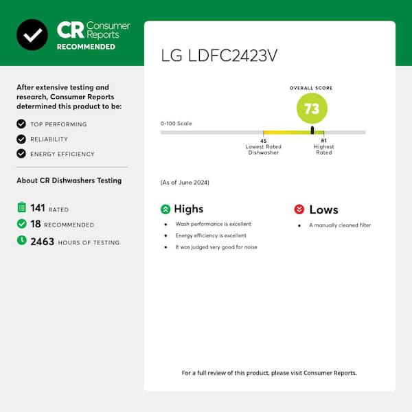 Be the first to ask a question for LG 24 in. Stainless Look Front Control Dishwasher with Stainless Steel Tub and SenseClean