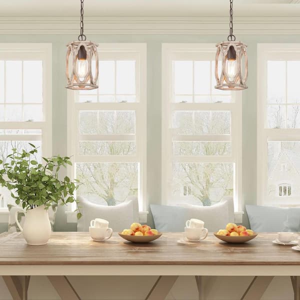 Questions and Answers for LNC Farmhouse Wood Pendant 6 in. W 1-Light Brown Drum Cage Rustic Island Pendant Light for Kitchen, Living Room, Foyer