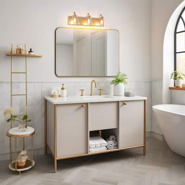 Questions and Answers for LNC Modern 22 in. 3-Light Gold Bathroom Vanity Light with Bell Clear Glass Shades Powder Room Wall Light for Mirror
