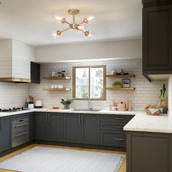 Questions and Answers for LNC Modern Matte Gold Sputnik 6-Light 25 in. Semi-Flush Mount Ceiling Light with Clear Globe Glass Shades for Dining Room
