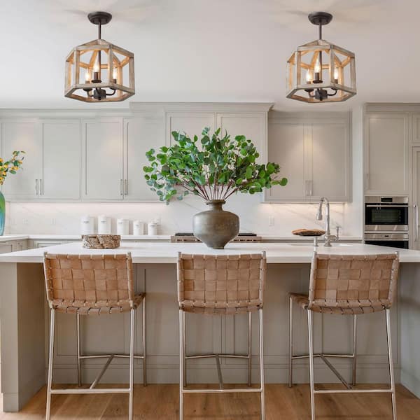 Questions and Answers for LNC Rustic Drum Bronze Wood Semi-Flush Mount, Industrial Geometric 3-Light Farmhouse Candlestick Antique Ceiling Lighting
