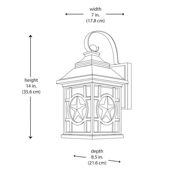 Questions and Answers for Laredo Texas Star 1-Light Large Black Outdoor Wall Light Fixture with Seeded Glass