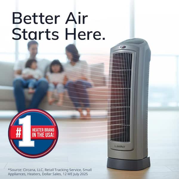 Questions and Answers for Lasko 1500W 22 in. Gray Electric Tower Ceramic Space Heater with Digital Display, Thermostat and Remote Control