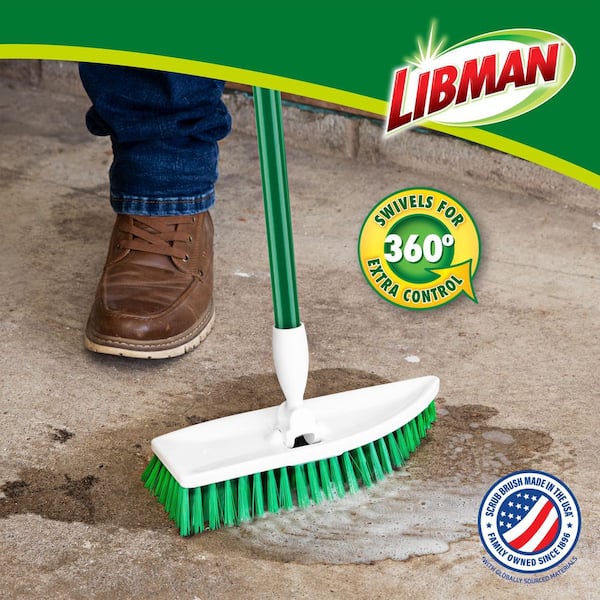 - Libman stiff and durable bristles scrub floors, walls, and decks