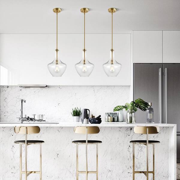 Questions and Answers for Light Society Sienna 1-Light Brushed Brass/Seeded Pendant with Glass Shade