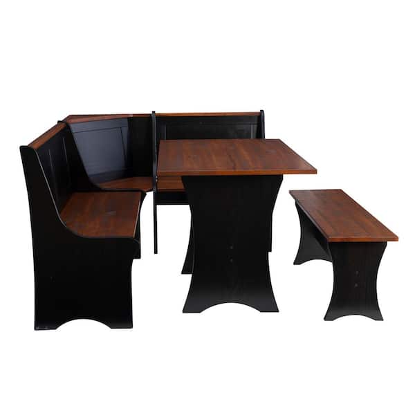 Questions and Answers for Linon Home Decor Becker 3-Piece L-Shaped Rectangle Black and Walnut Wood Top Nook Dining Set Seats 5