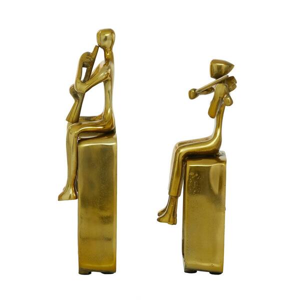 Be the first to ask a question for Litton Lane Eclectic Musician Aluminum Sculpture Decor Set in Polished Gold Finish, Set of 2: 12.5 in.H,14.5 in.H