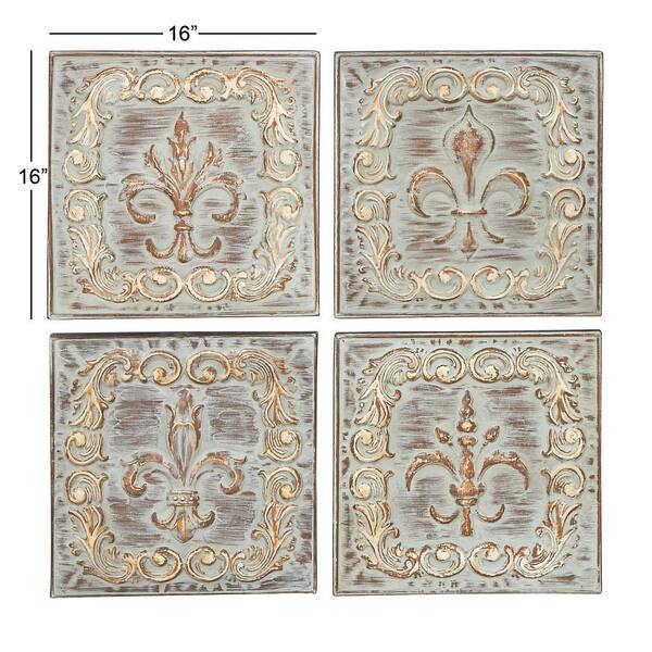 Questions and Answers for Litton Lane Metal Brass Embossed Fleur De Lis Wall Decor (Set of 4)