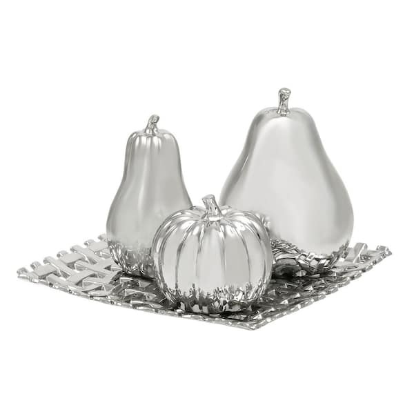 Questions and Answers for Litton Lane Silver Ceramic Decorative Fruit Sculpture with Plate (Set of 4)