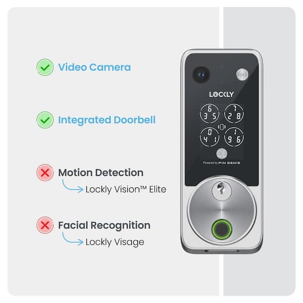 Be the first to ask a question for Lockly Vision 2K Video Zeno Satin Nickel Deadbolt Wifi Doorbell Smart Lock,Home Key,Night Vision,Fingerprint, Siri/Alexa/Google