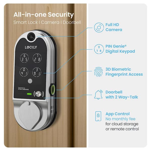 Be the first to ask a question for Lockly Vision Satin Nickel Deadbolt WiFi Smart Lock with Video Doorbell, Fingerprint, Keypad, App, Voice Control, 2-Way Audio