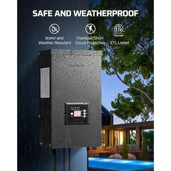 - Outdoor Waterproof 12 Volt Transformer with Photocell & Timer