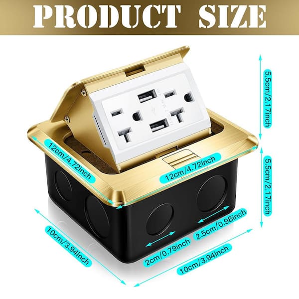 Be the first to ask a question for Lukyamzn Gold 20A Weatherproof, Tamper Resistant Pop up Floor, Counter Top Outlet Kit with 2-Outlets. 2 USB-A Ports - (4-Pack)