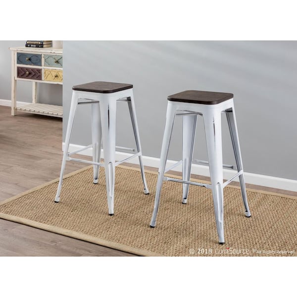 Questions and Answers for Lumisource Oregon 30 in. Vintage White and Espresso Bar Stool (Set of 2)