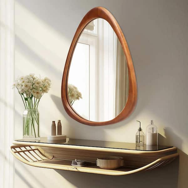 Be the first to ask a question for LuxHomez 19 in. W x 24 in. H Irregular Natural Wood-Frame Wall Mirror, Distinctive Asymmetric Design